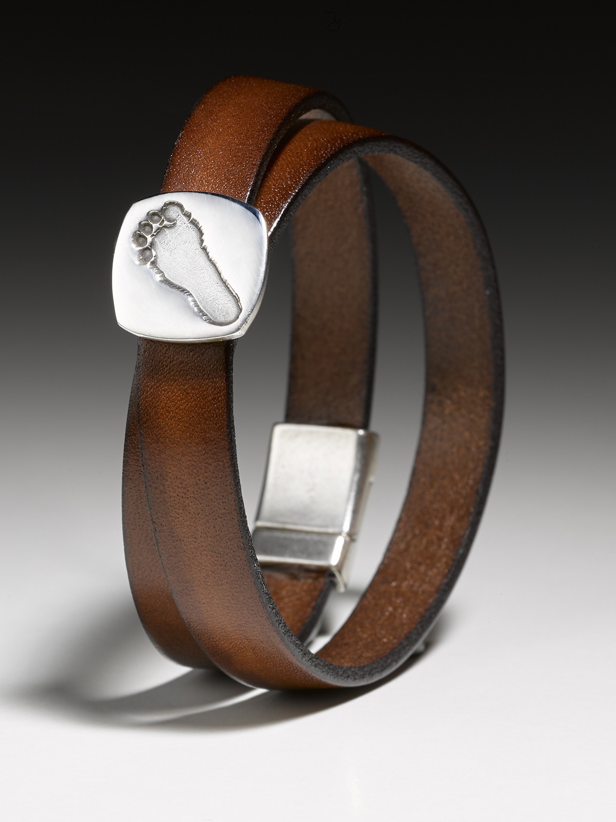 Wickellederarmband mit eckiger personalisierter Fußabdruckplatte
