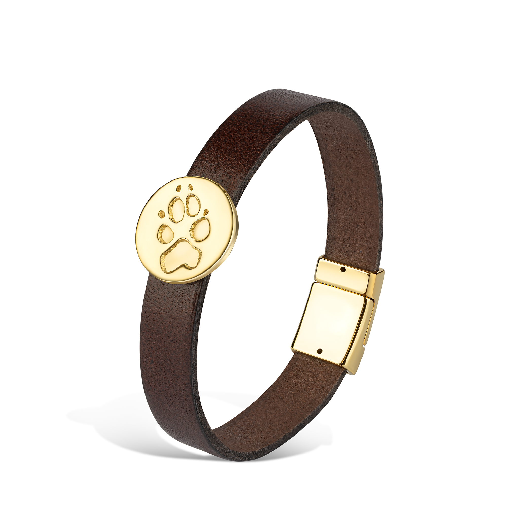 Wickelarmband mit Pfötchenabdruck-Nugget in Feinsilber mit einem Magnetverschluss.