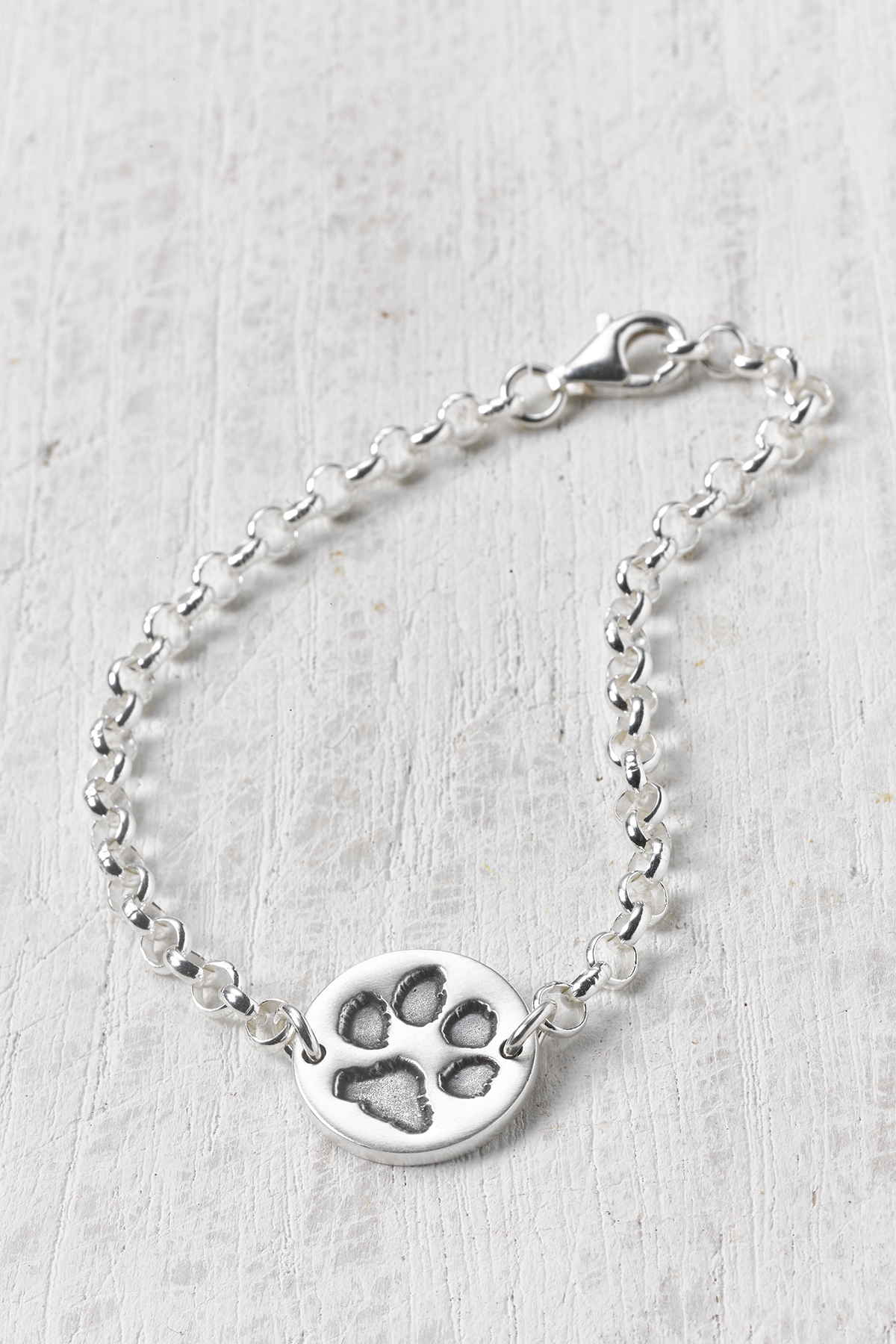 Silberarmband mit integriertem runden Pfotenabdruckcharm in Silber