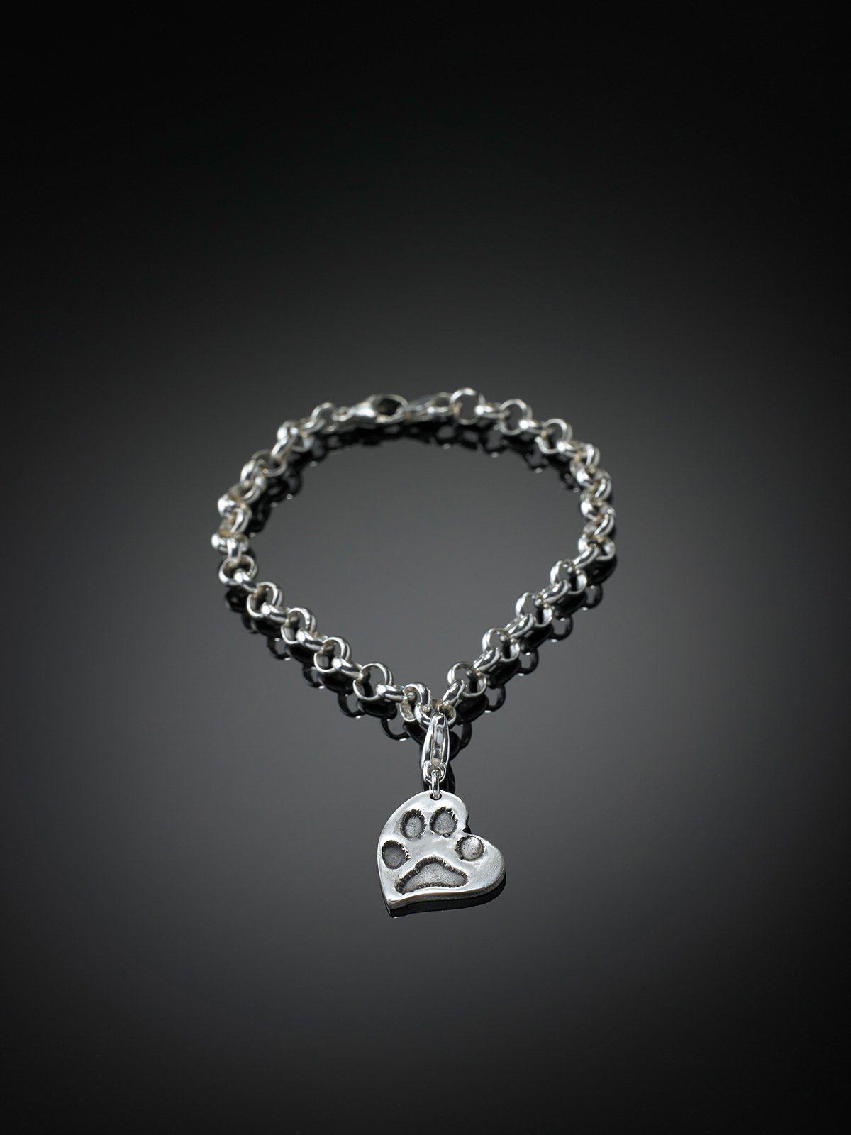 Silberarmband mit Pfötchenabdruck-Herzanhänger in Silber