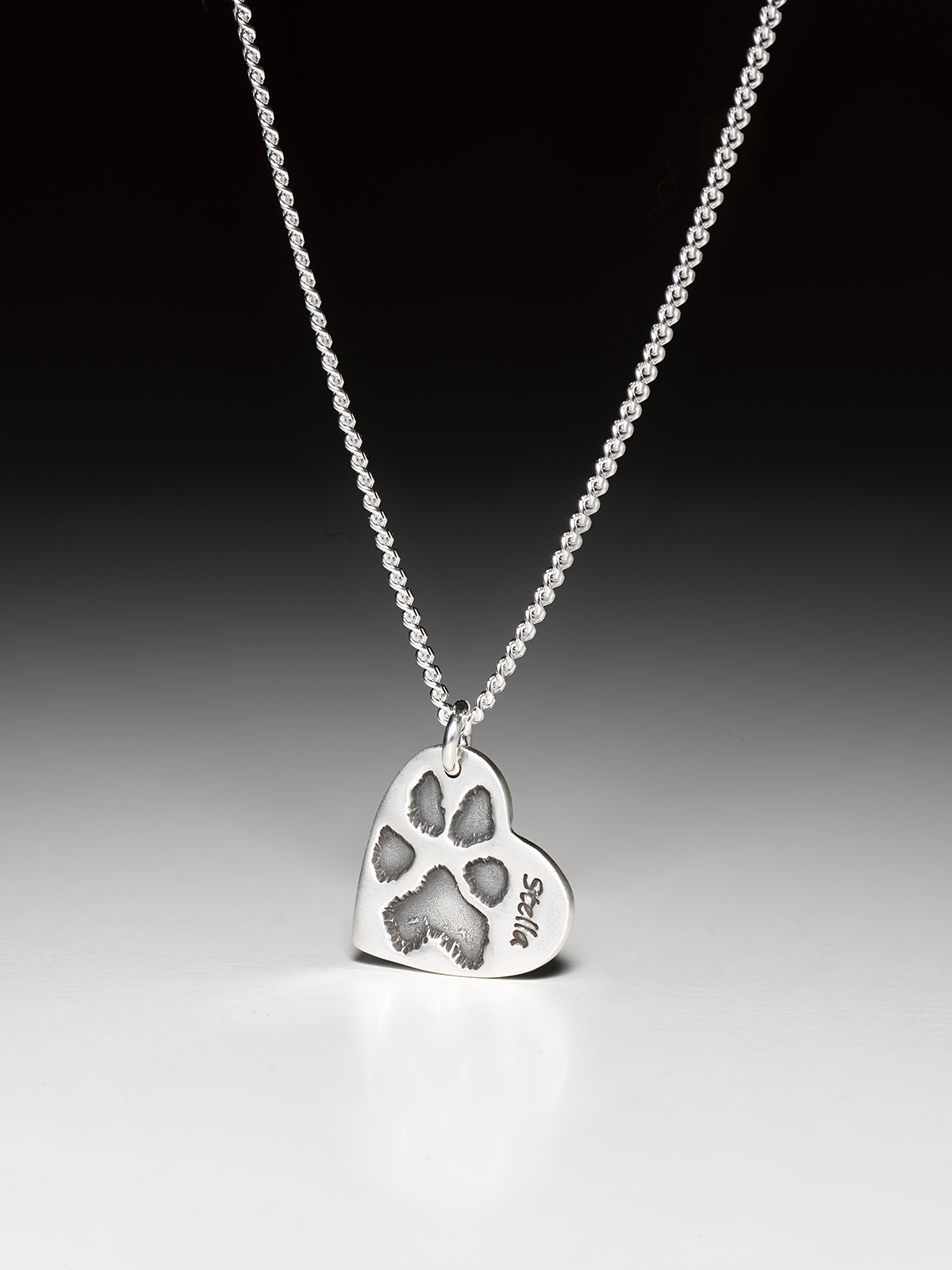 Silberkette mit einem kleinen Pfotenabdruck-Herzanhänger