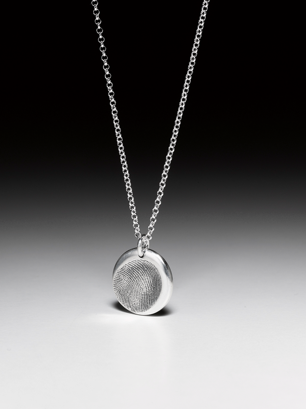 Silberkette mit einem kleinen runden doppelseitigem Fingerprint-Anhänger